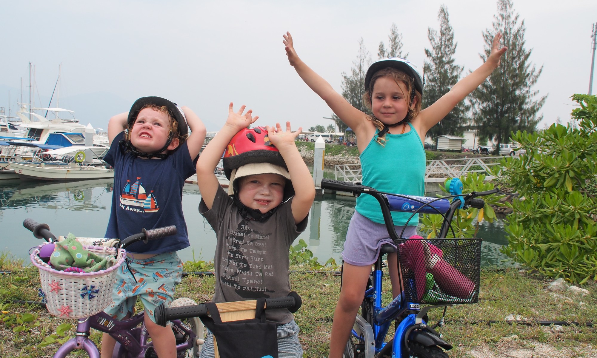 We lucked into good company on our first day. We went to the boatyard to greet Atea for the first time in ten months when we saw two small figures madly peddling along the walkway. To my delight, they turned down the ramp to a yacht at the end of the jetty. I went around to introduce myself and was delighted to meet a very chatty and warm Canadian woman and her Australian family. Her two daughters are two and five, the youngest a month off Braca’s birthdate. We laughed at the kit that comes with kids and how ridiculous some of it was in a cruising context – babies on boats with bikes. John and I had debated before leaving Auckland at how ridiculous it was to bring a bicycle and trike (for the baby who isn’t yet crawling!), but this introduction started a ritual of morning communal bike rides and an immediate friendship. “Where are my girls?!” was the first thing Braca would say in the morning and they’d soon be off as a connected threesome. They would be off peddling around the marina, swimming in the hotel pool, hanging out below decks playing games or attending home-schooling lessons. We also took excursions into town, which provided access to local attractions and activities. SV Wandoo made the three weeks in Pangkor Marina a very social, welcome affair.