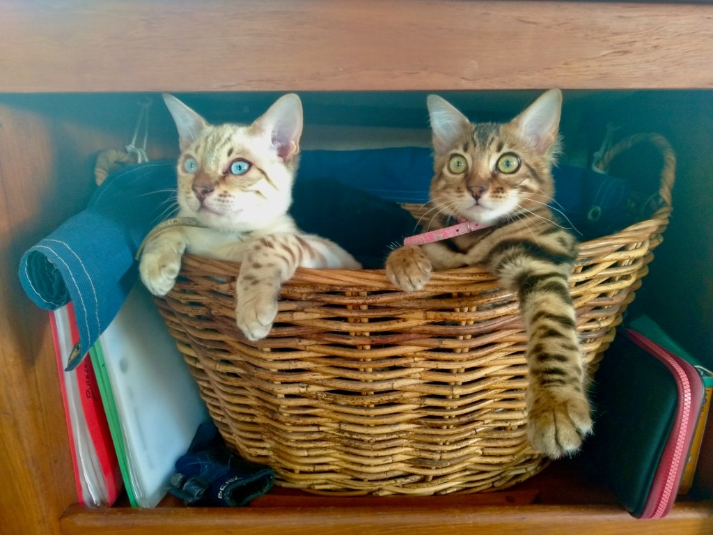 This year we decided to add complication to chaos. In March we added two cats to the ships crew list, picking up two beautiful bengal siblings in South Africa. We were cleaver, agreeing that if we could circumvent the litter box situation we would rid ourselves of the major disadvantage to cats on boats. We diligently taught our cats to use the toilet and the cats dutifully obeyed. All well for a boat in lockdown.